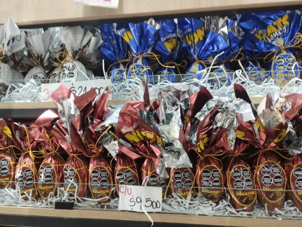 En cuanto a los precios, Acosta detalló que existen diversas promociones para adaptarse a la demanda. Entre las opciones, mencionó huevos medianos en promoción de tres unidades por 21.000 pesos, mientras que los de mayor tamaño se ofrecen tres por 42.000 pesos. También hay alternativas más económicas como huevitos macizos o rellenos, con ofertas de diez unidades por 4.900 pesos, además de chupetines con forma de conejo y conejos de chocolate en distintos tamaños, todos con precios promocionales.